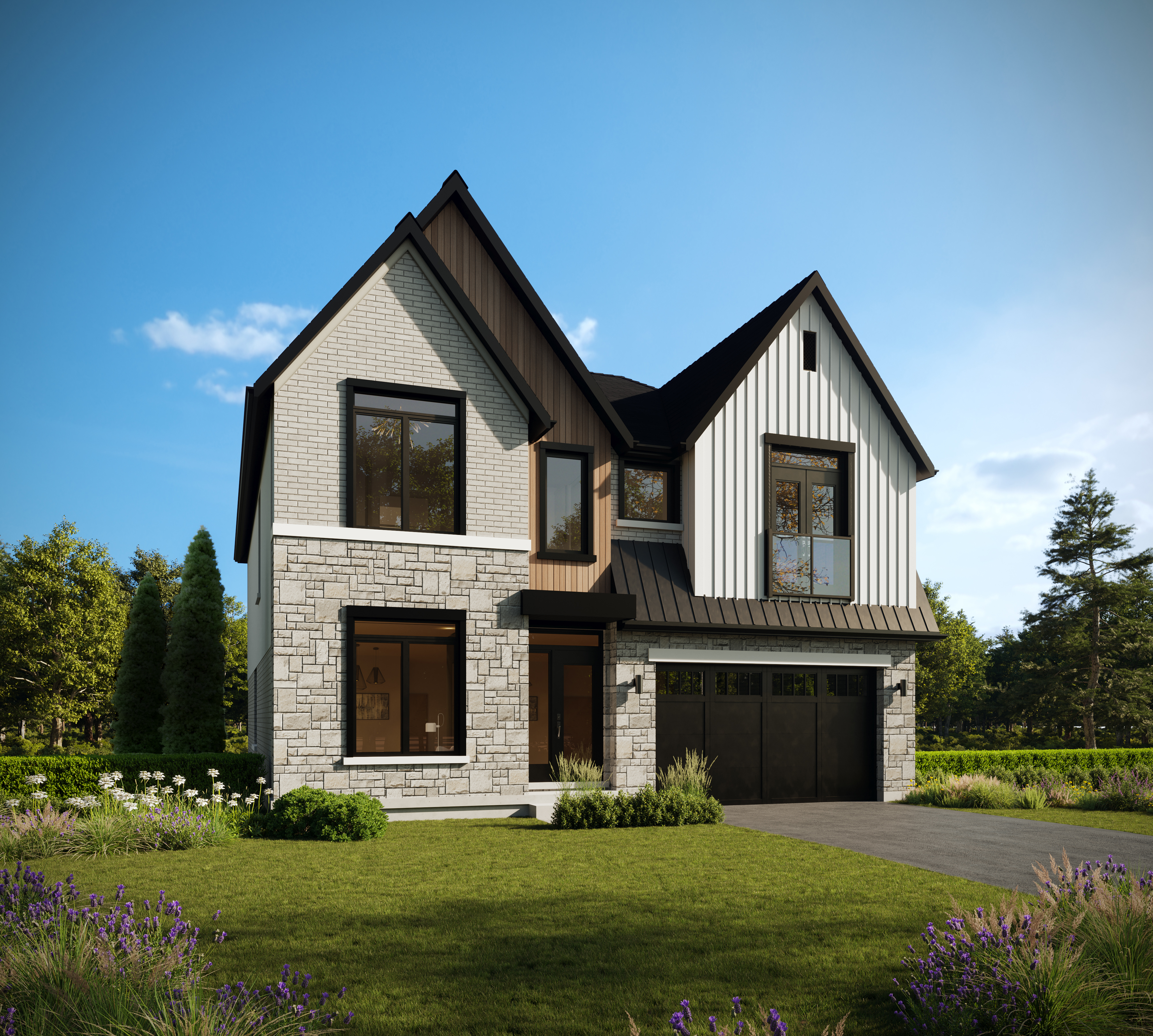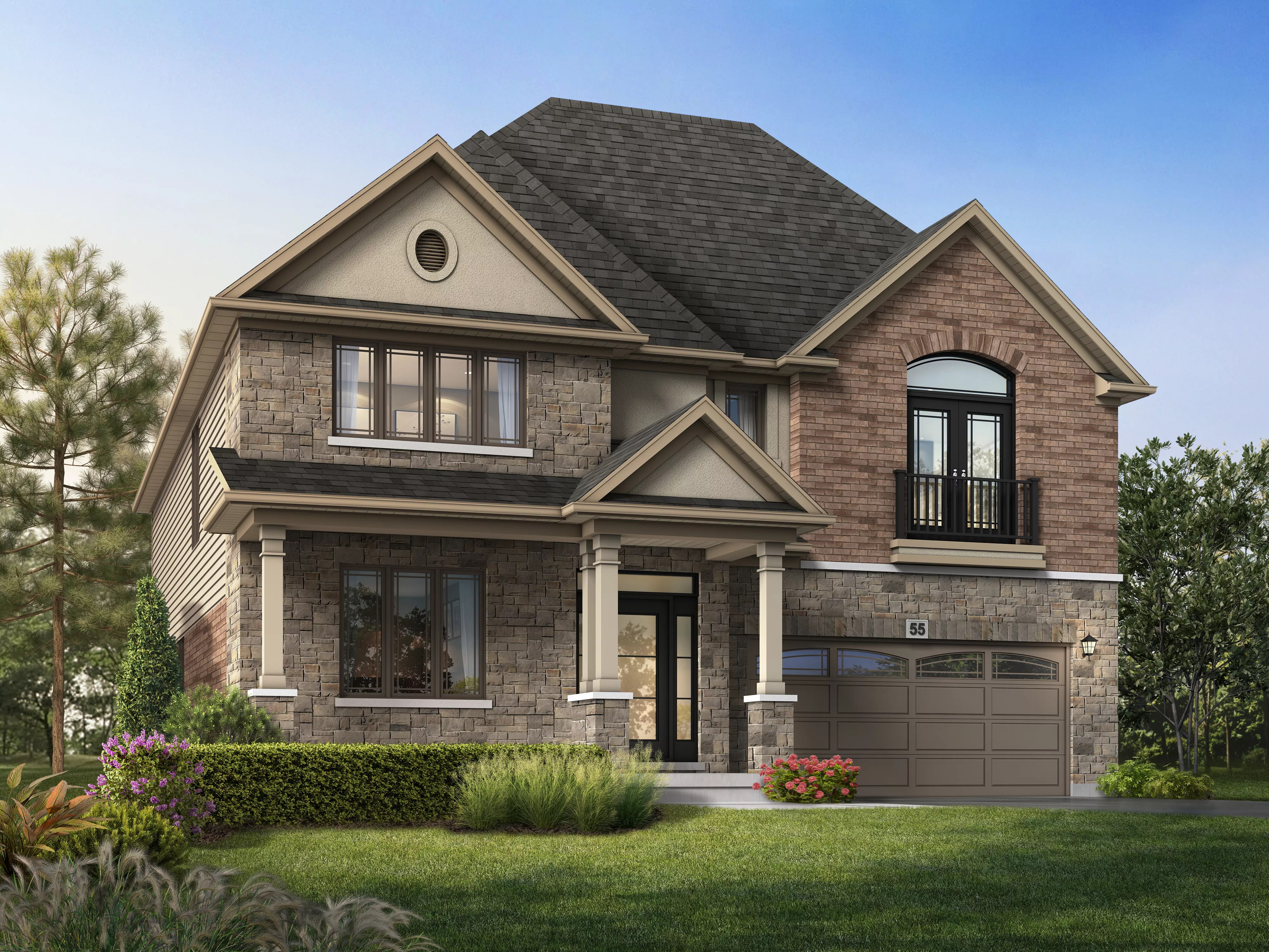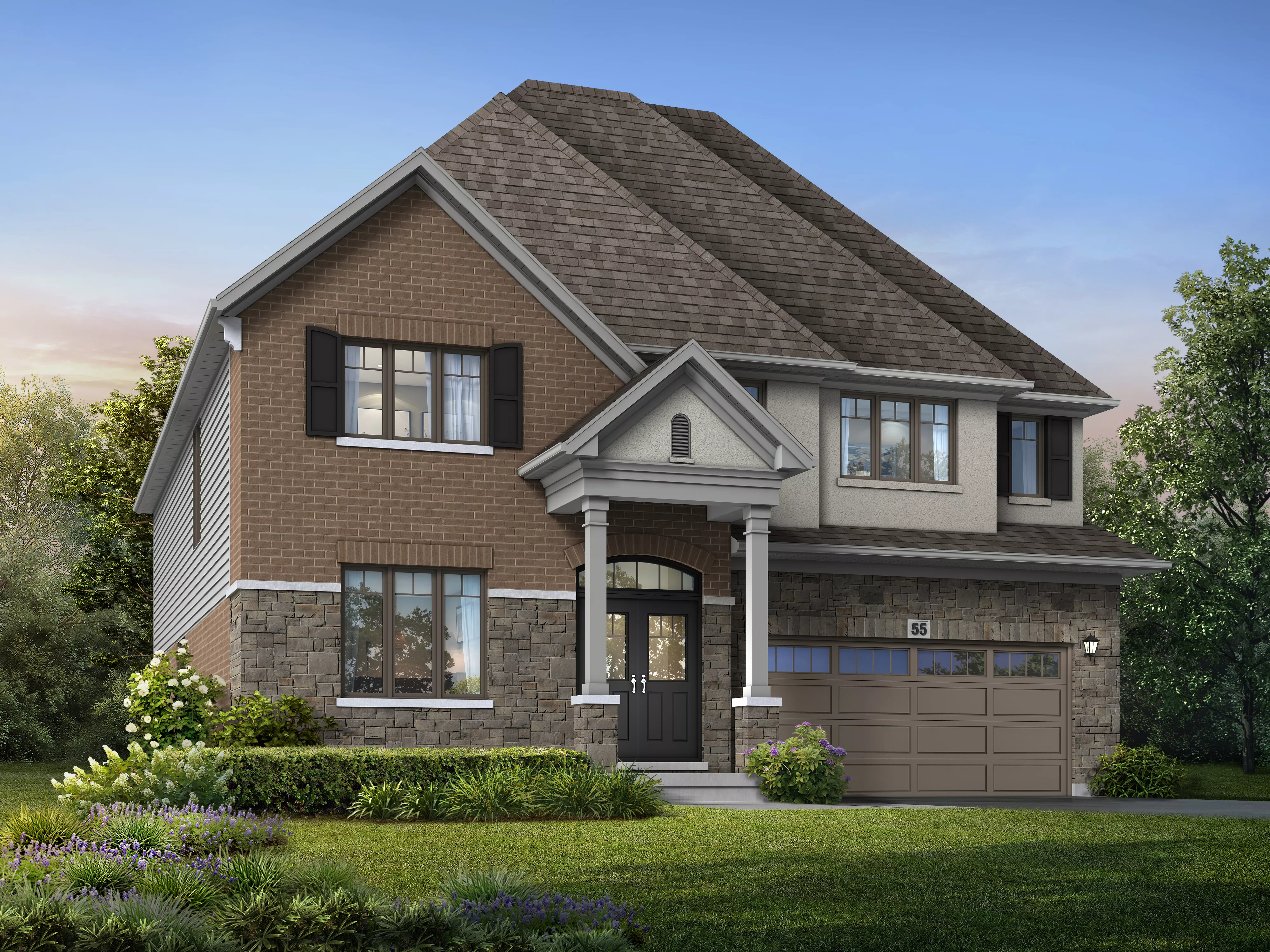 The Kensington offers 4–5 bedrooms and 3.5 baths in a design that blends comfort with sophistication. The main floor features an open-concept kitchen and great room paired with a formal dining area, while the second floor includes a luxurious primary suite and flexible bedroom options. For added versatility, you can choose an optional lower level or expand to a five-bedroom layout to suit your lifestyle.